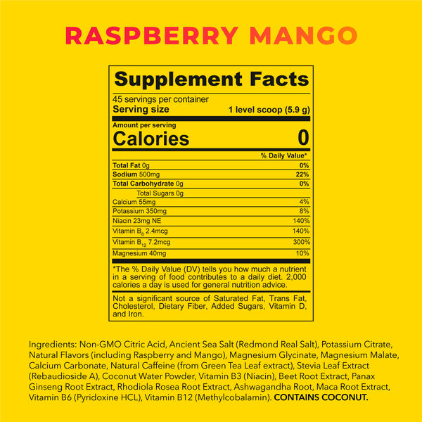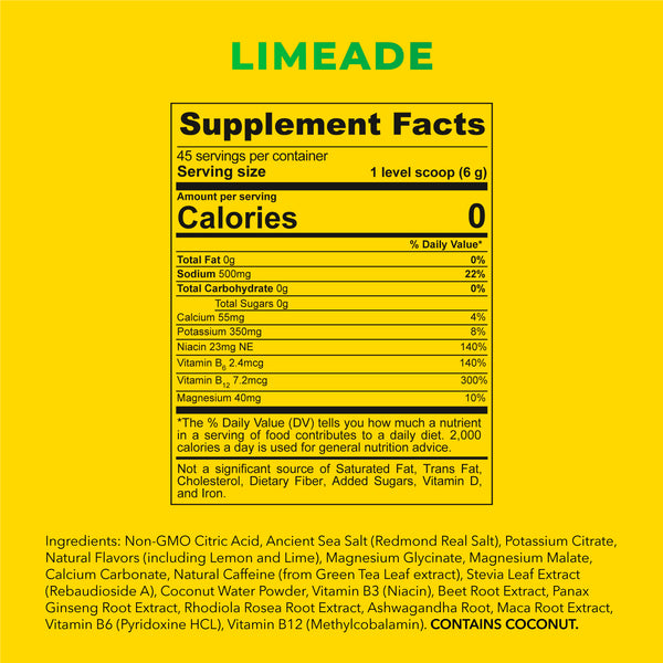 Enjoy clean, revitalizing energy with Redmond Re-Lyte Energy. Through a blend of herbs, vitamins, electrolytes, and a balanced dose of caffeine from green tea extract, this refreshing drink mix is intentionally formulated to fuel natural energy while minimizing the chance of jitters or a crash. Drink it daily to feel fresh, focused, and ready for anything!